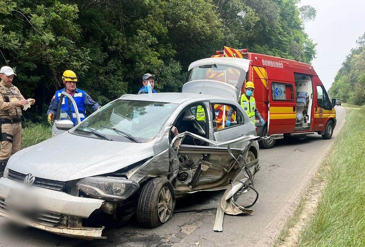 Acidente na Rodovia SC 477 deixa idoso preso em veículo.