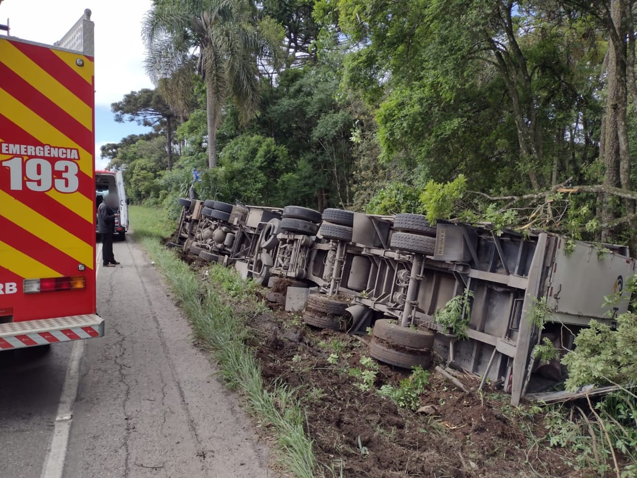 Por volta das 09:03h, nesta segunda-feira (06/11), a guarnição de serviço de Três Barras foi acionada para atendimento a um tombamento de carreta na SC-120, próximo ao trevo de acesso da BR-280. Ao chegar no local, confirmou-se a ocorrência. Após os devidos gerenciamentos de riscos, foi acessado a cabine do caminhão, aonde não foi encontrado nenhuma vítima. Posteriormente, chegou no local um homem que se apresentou como motorista do caminhão. De acordo com ele, ele estava com sua filha, aonde perdeu o controle e tombou. Ainda, relatou que não havia sofrido nenhuma lesão, assim como sua filha também não. Após procedimentos e orientações, a ocorrência ficou em responsabilidade da Polícia Militar Rodoviária.