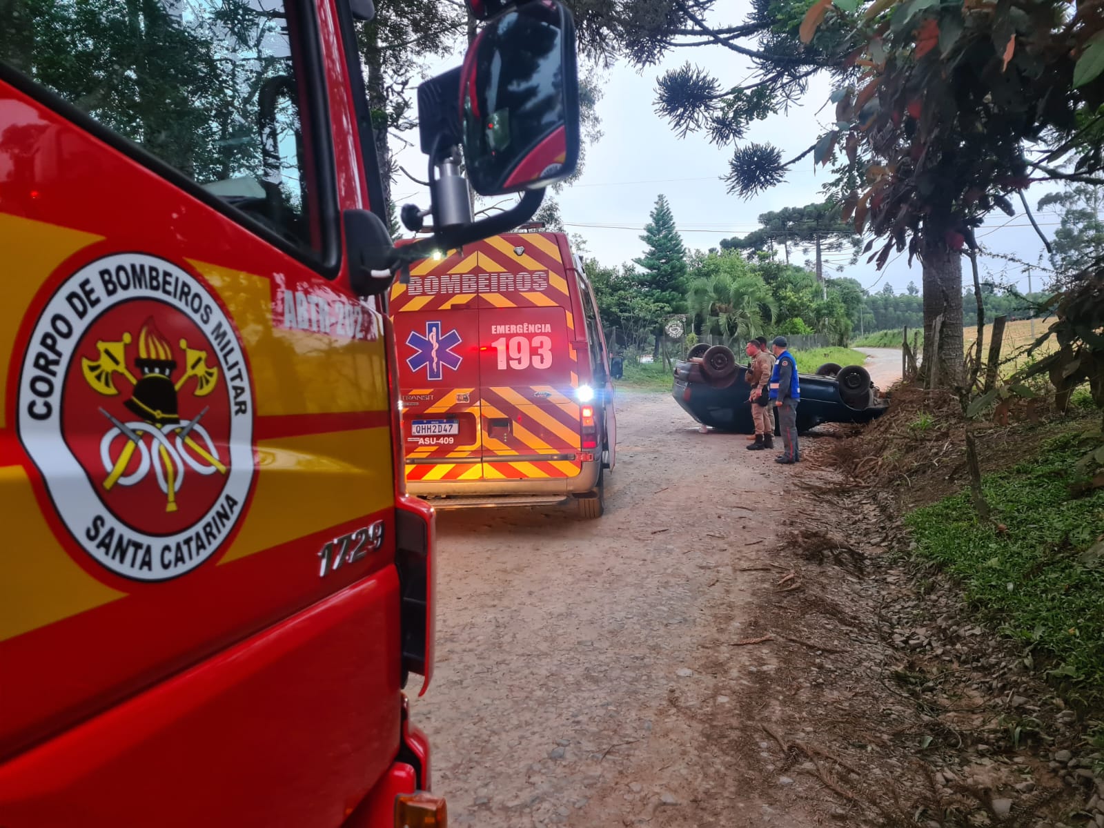 Capotamento deixa duas pessoas feridas em Canoinhas.