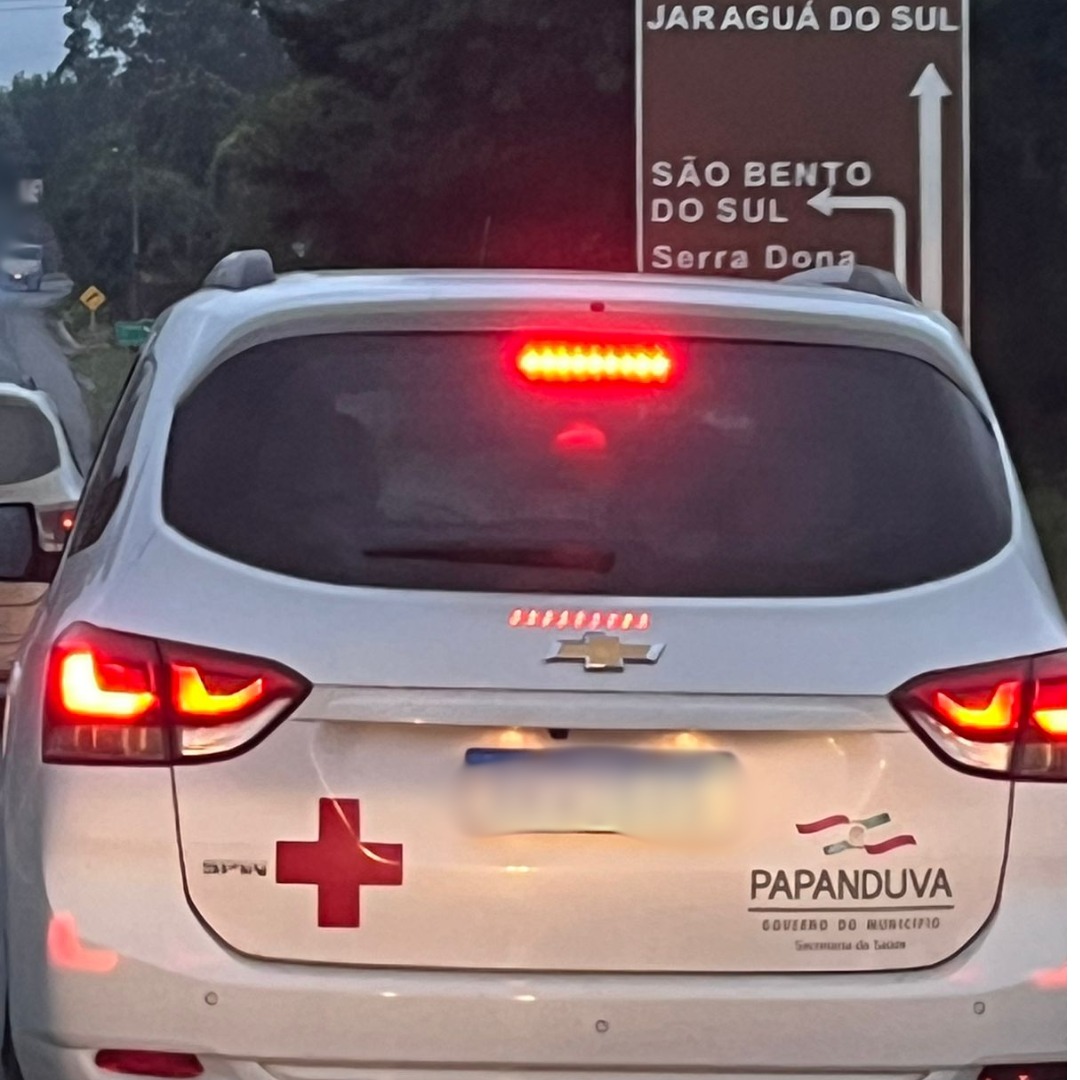 Carro da saúde de Papanduva – SC é flagrado fazendo ultrapassagem perigosa próximo a ponte Pit Pit, em Rio Negrinho.