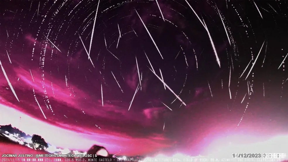 Mais de 400 meteoros foram vistos na chuva Geminídeas, cujo ápice ocorreu na madrugada desta sexta-feira (15), segundo o astrônomo amador Jocimar Justino. Ele filmou o fenômeno em Monte Castelo, no Norte de Santa Catarina.