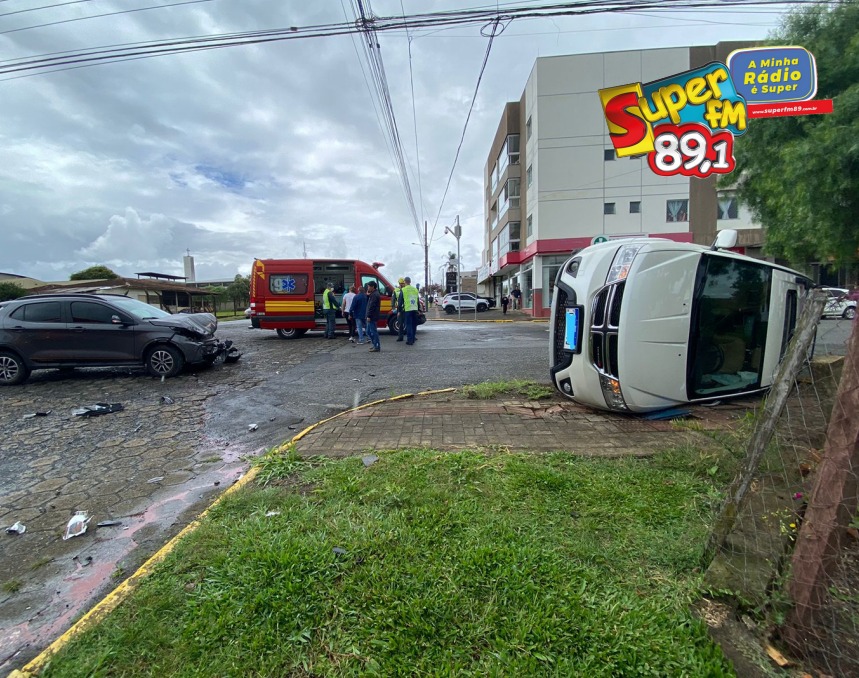 Uma colisão entre dois carros seguida de tombamento ocorreu na rua Governador Jorge Lacerda, no bairro centro, próximo da Farmácia FarmaSim, em Papanduva, Santa Catarina.