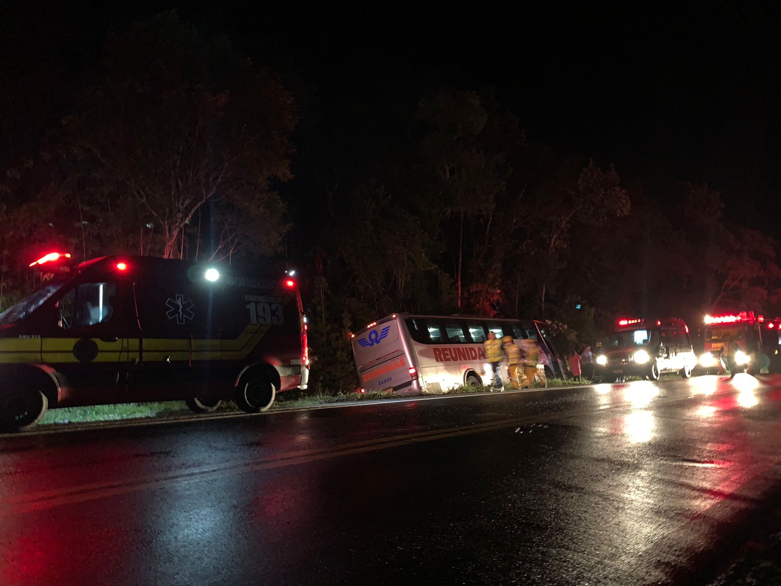 Acidente com ônibus na BR-280 mobiliza bombeiros e PRF