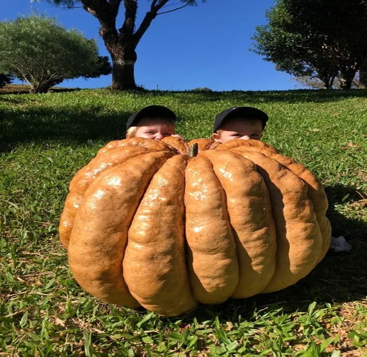 Agricultora colhe abóbora com quase 60 kg. O fato foi registrado na comunidade de Cerro Azul, interior do município de Ibiam no Meio-Oeste catarinense.