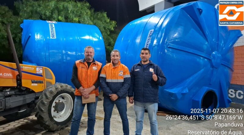 A Prefeitura de Papanduva segue investindo em melhorias para garantir mais qualidade de vida aos moradores do interior. Na última sexta-feira, o município recebeu da Defesa Civil de Santa Catarina os reservatórios de água que serão instalados na localidade de São Tomaz, marcando um importante avanço para a implantação de um novo sistema de abastecimento na comunidade.