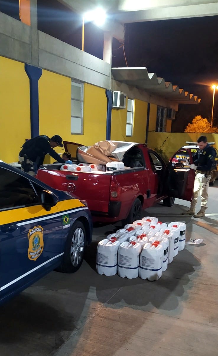 Policiais rodoviários federais apreenderam na noite de domingo (21), na BR 116 em Mafra, 920 litros de agrotóxico de importação proibida.Os 46 galões de 20 litros cada estavam no compartimento de carga de uma GM/Montana placas de Salgado Filho/PR. O motorista disse que comprou o produto na divisa com a Argentina e o revenderia para produtores de banana em Santa Catarina.Segundo resolução da ANVISA (Agência Nacional de Vigilância Sanitária), este agrotóxico possui proibição de entrada no país. O motorista de 27 anos foi levado à Delegacia de Polícia onde vai responder por contrabando e por crime ambiental.Fonte : PRF