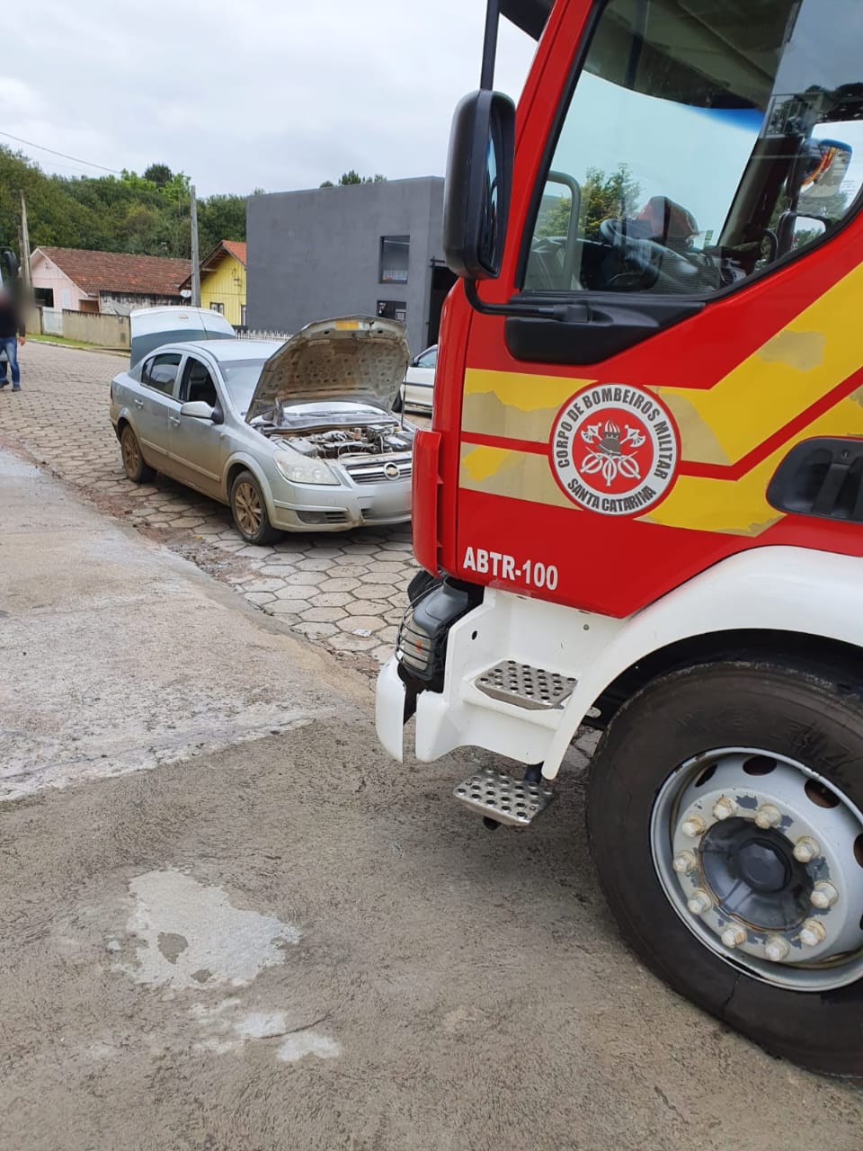 No local, foi encontrado o veículo Vectra, Placas de Benedito Novo, com o condutor de 43 anos, que relatou estar trafegando pela via acompanhado de sua família, quando percebeu o fogo no compartimento do motor. De imediato, estacionou o veículo, e rapidamente, retirou a família do veículo. Em seguida, utilizou o extintor veicular e recebeu ajuda de moradores da região, que obtiveram êxito no controle e extinção do incêndio.