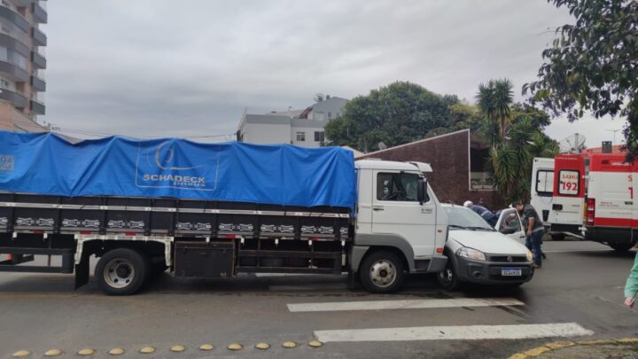 Batida entre carro e caminhão é registrada no centro de União da Vitória