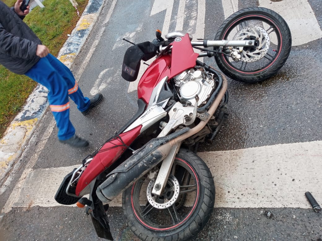 Ao chegar no local, foi confirmada colisão lateral envolvendo um carro e uma moto. A única vítima era o condutor da moto Yamaha Ys 150 vermelha, placa de Rio Negro – PR, um homem de 35 anos, que encontrava-se deitado pista, consciente e orientado, relatando dores na perna direita.
