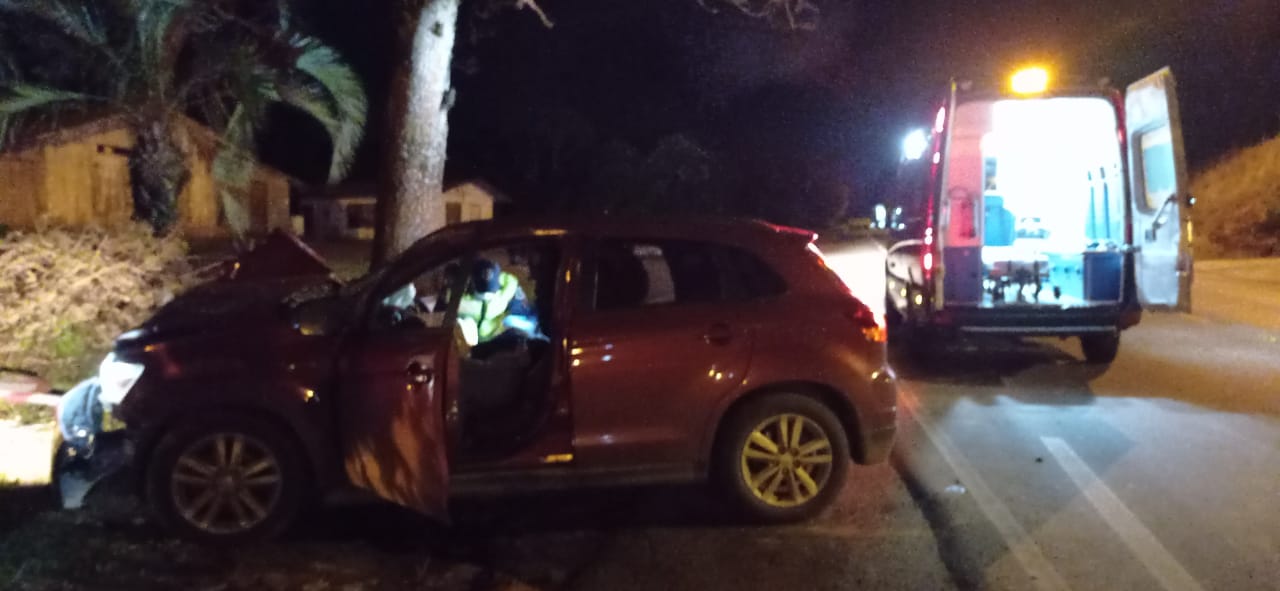 Às 02:03h de sábado (01), a equipe do Corpo de Bombeiros foi acionada pelo COBOM para atendimento de um acidente de trânsito, envolvendo o veículo Mitsubishi ASX de cor bordô, que se chocou contra uma árvore, na SC-418, no Centro de Campo Alegre.