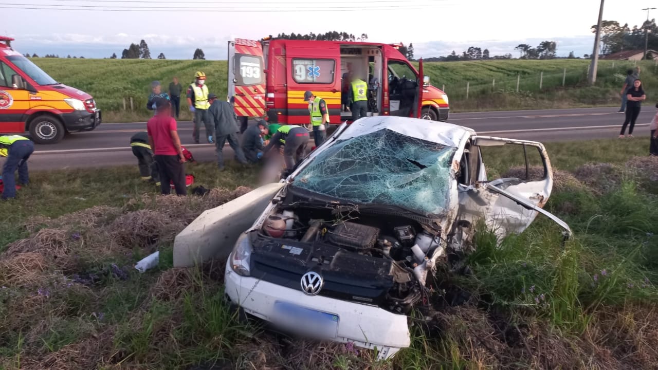 No banco traseiro do veículo fox, com placas de Cruz Machado – PR, encontrava-se uma criança de 7 anos de idade, consciente e orientado, apresentando escoriações no rosto e suspeita de fratura no braço esquerdo, e uma mulher de 37 anos, mãe da criança, consciente e orientada relatando dores abdominais. O pai, um homem de 39 anos que se encontrava consciente e orientado com suspeita de fratura na perna esquerda, e uma adolescente de 14 anos, que se encontrava consciente e orientada relatando dores nas pernas. As vítimas foram conduzidas para UPA de Canoinhas.