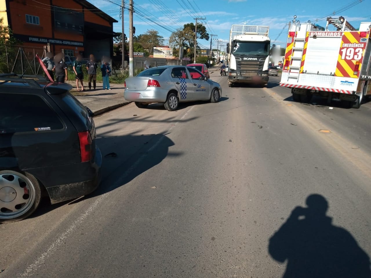 2° veículo: um Voyage, com placasde Rio Negrinho, conduzido por um homem de 62 anos, consciente e orientado, relatando dores e escoriações na face e na mão direita.