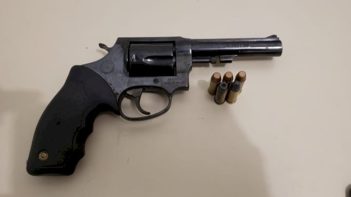 Dentro do veículo ainda havia um homem de 32 anos, realizada a abordagem foi localizado uma porção de maconha, e, quando questionado, afirmou ser para consumo pessoal. Após a busca veicular, foi localizada uma arma de fogo calibre 38, com cinco munições intactas.