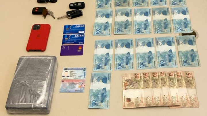 Foi realizada a abordagem e identificado o condutor, de 28 anos, que estava visivelmente nervoso. Durante a busca pessoal, nada foi encontrado, porém no interior do veículo foram localizados aproximadamente um quilo de cocaína e R$ 1.950,00 em dinheiro. Quando questionado, o homem relatou que estava há pouco tempo comercializando entorpecentes.