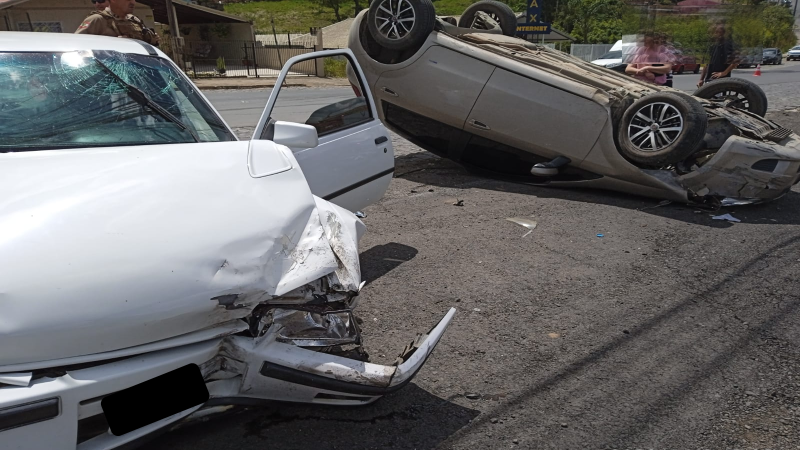 Motorista capota veículo após colisão no centro de Itaiópolis