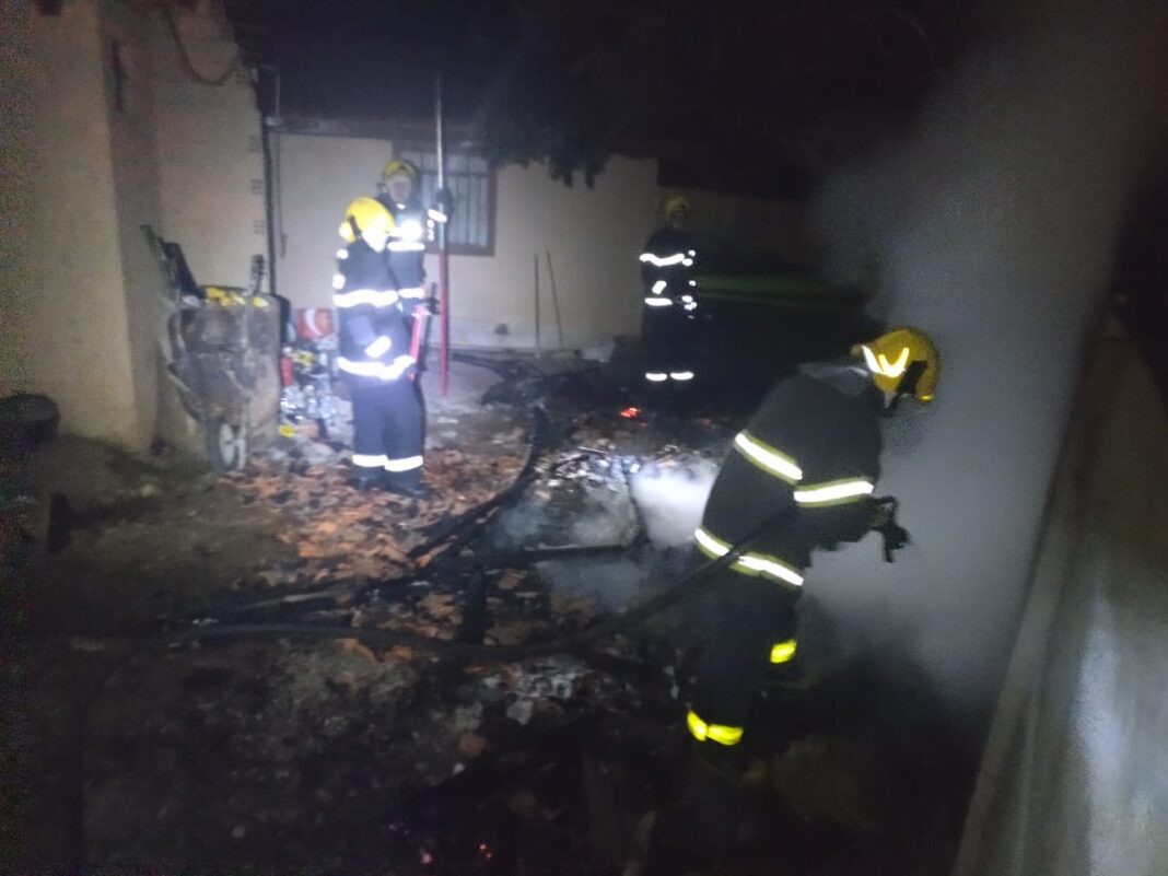 Segundo os bombeiros, o fogo começou em um paiol de madeira, de aproximadamente 12 metros quadrados que foi encontrado completamente tomada pelas chamas oferecendo risco a duas casas que ficam no mesmo terreno.