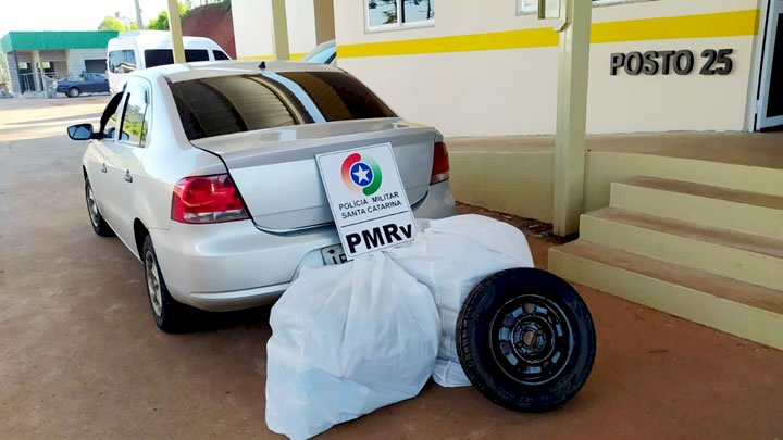 Na madrugada desta quinta-feira, 8, a Polícia Militar Rodoviária (PMRv) realizou uma apreensão de contrabando e descaminho. Desta vez foi no KM 157,250, da SC-480, em Chapecó.Por volta das 4 horas, a guarnição do Posto 25 realizou a abordagem de um veículo guincho, que transportava um veículo de passeio, com placas do Rio Grande do Sul.Durante a abordagem, foi constatado que haviam dois homens no interior do veículo e estavam de posse de produtos trazidos ilegalmente do Paraguai, como cigarros eletrônicos, maços de cigarro convencional, bebidas, produtos de beleza, além de pneus de origem paraguaia, já instalados no carro.