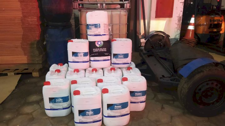 Quando questionado, o motorista informou que teria pego os galões no estado do Paraná e que levaria até a cidade de Vicente Dutra, no Rio Grande do Sul.