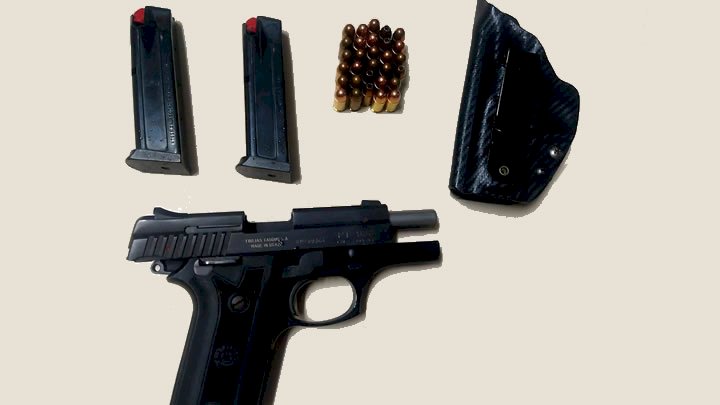 A guarnição estava efetuando rondas na SC-281, quando avistou um veículo com os vidros totalmente cobertos por película escura. Na abordagem, durante a busca pessoal foi localizada com o condutor uma pistola calibre 380, carregada com 15 munições e mais um carregador sobressalente com 15 munições.