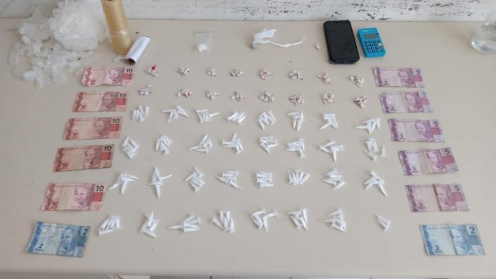 Na tarde de sábado, 7, na Rua Fátima, bairro Guanabara, após receber denúncias que no local estaria ocorrendo tráfico de drogas, a guarnição prendeu dois homens, de 50 e 55 anos. Na ação foram apreendidas 80 pedras de crack, 157 pinos de cocaína, duas porções de maconha, cinco gramas de pasta base de cocaína, R$ 79,00 em dinheiro trocado, um telefone celular, uma máquina de cartão, e embalagens para acondicionar as substâncias.