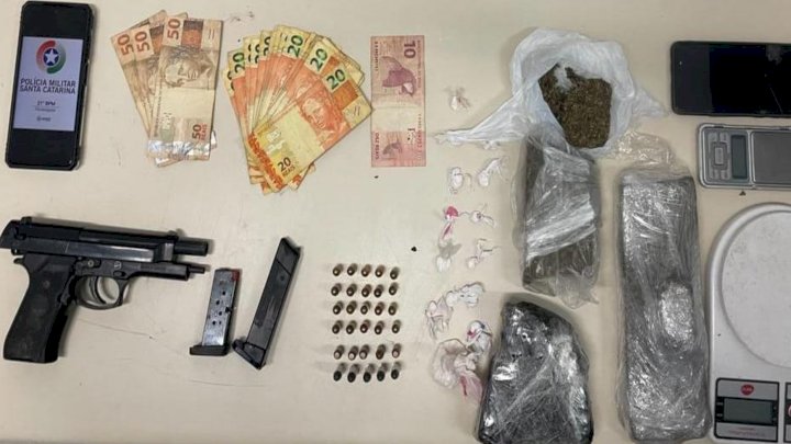 Ao todo, foram apreendidas 17 gramas de cocaína, 1,3 kg de maconha, um smartphone, 480 reais, 24 munições de calibre 380, uma munição de calibre 9 mm, cinco munições de calibre 38, um simulacro de arma de fogo e balança de precisão.