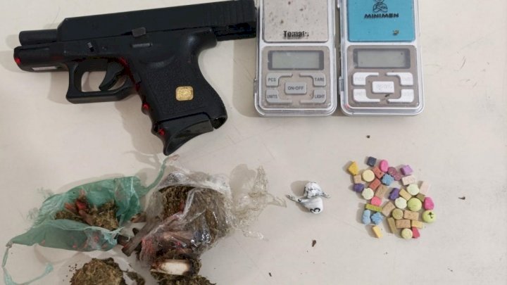 Diante dos fatos, a vítima autorizou a entrada das guarnições na residência e, durante as buscas, foram encontrados algumas porções de maconha contendo 60 gramas, 36 comprimidos de ecstasy, duas buchas de cocaína contendo aproximadamente 1 grama, um simulacro de pistola e duas balanças de precisão.