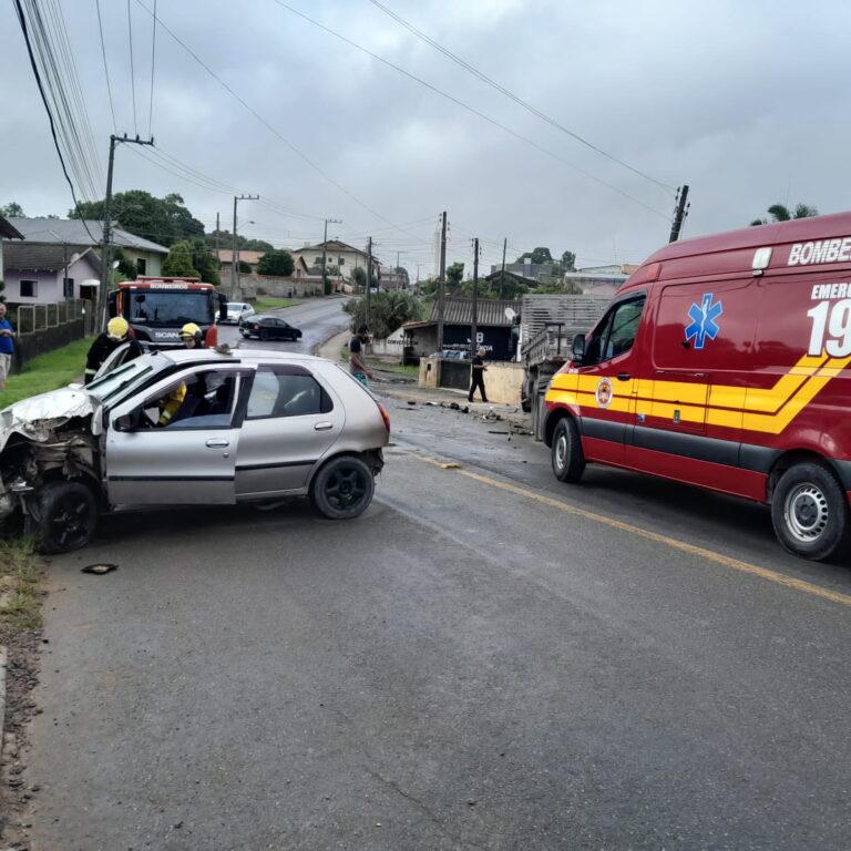 Um carro e um caminhão se envolveram em um acidente na manhã desta quinta-feira, 16, no bairro Brasília, em São Bento do Sul.