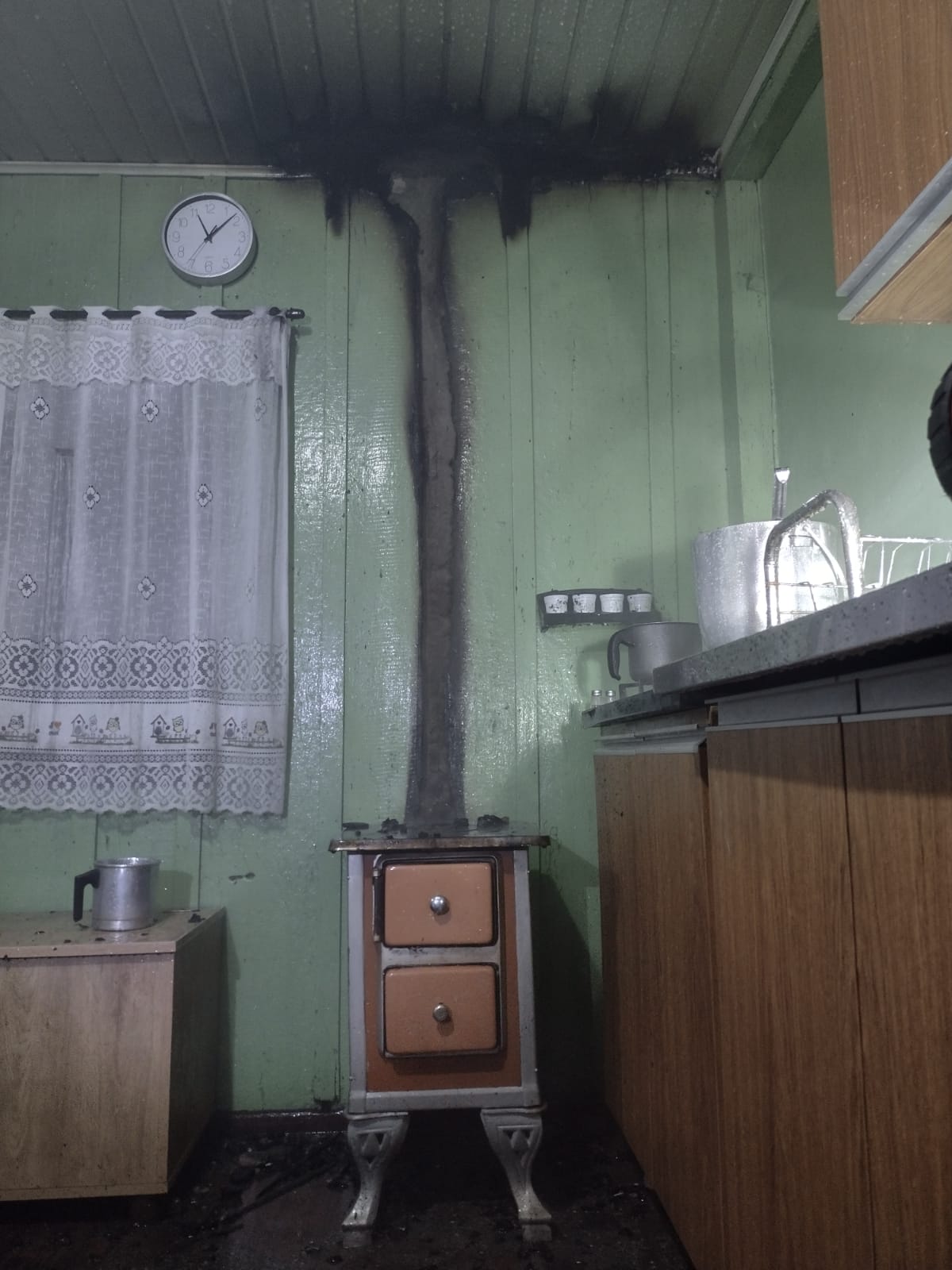 Chegando no local foi confirmada a ocorrência onde houve um incêndio no chaminé de um fogão a lenha e se estendeu ao telhado de uma residencia, no momento do incêndio não havia nenhum morador, então rapidamente a guarnição iniciou o combate as chamas com uma linha de ataque , com o uso dos equipamentos de proteção individual e respiratório a guarnição conseguiu identificar o foco do incêndio e o extinguir pela parte externa da residência.