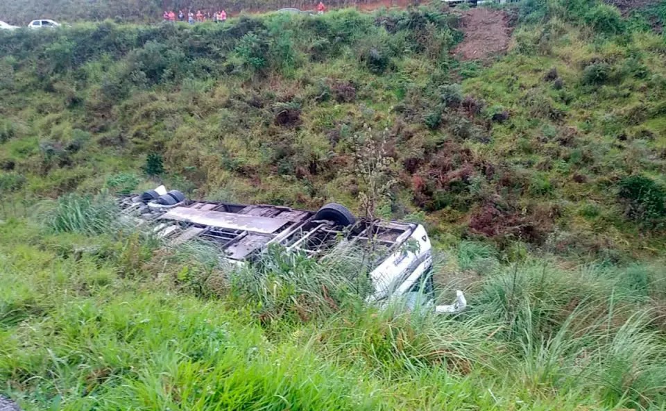 Ônibus com 52 passageiros capota na BR-116; uma pessoa morre e outras 11 ficam feridas