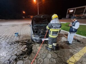 Incêndio em veículo mobiliza Bombeiros no bairro Mato Preto, em São Bento do Sul.