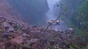 Um desmoronamento de terra interditou totalmente o km 17,4 da SC-418, trecho conhecido como Serra Dona Francisca, em Joinville, Norte de Santa Catarina, nesta sexta-feira