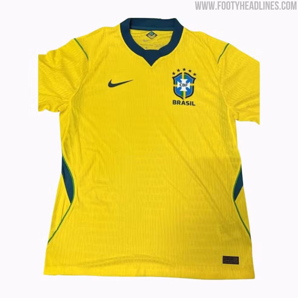 A nova camisa da Seleção Brasileira para a Copa do Mundo de 2026 teve imagens vazadas pelo site especializado FootyHeadlines. O modelo traz amarelo predominante e detalhes em verde, inspirado no uniforme usado na conquista do tricampeonato em 1970.